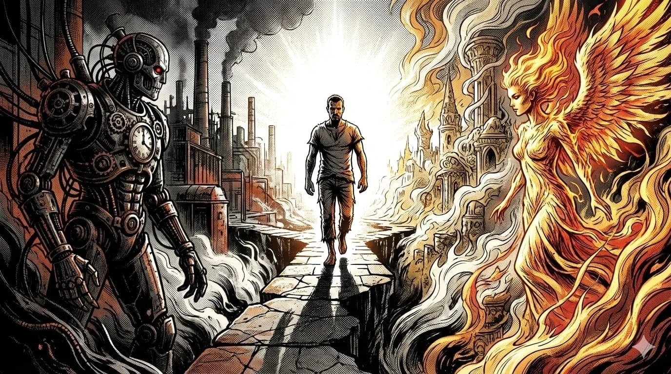 Rudolf Steiner described the human experience not as a static state, but as a dynamic tension between two opposing cosmic forces. On one side pulls Ahriman: the cold, hardening force of materialism that seeks to bind us entirely to the machine, turning man into a soulless automaton. On the other pulls Lucifer: the burning, expansive force that relentlessly tempts us to flee our physical reality for a life of pure fantasy, abstraction, and ego.